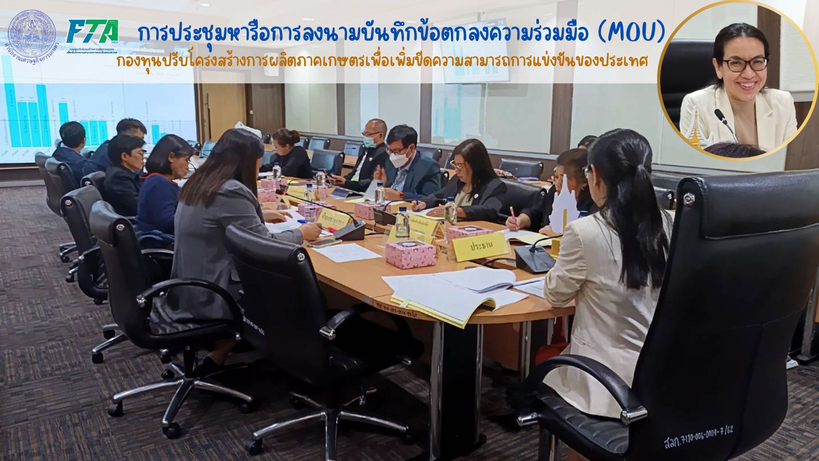 ดร.กาญจนา ขวัญเมือง รองเลขาธิการสำนักงานเศรษฐกิจการเกษตร เป็นประธานการประชุมหารือการลงนามบันทึกข้อตกลงความร่วมมือ (MOU) ของกองทุนปรับโครงสร้างการผลิตภาคเกษตรเพื่อเพิ่มขีดความสามารถการแข่งขันของประเทศ ......