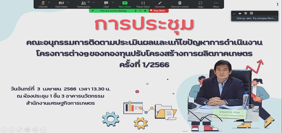 นายเอกราช ตรีลพ ผู้เชี่ยวชาญด้านเศรษฐกิจการผลิตและการตลาด สำนักงานเศรษฐกิจการเกษตร เป็นประธาน ในการประชุมหารือแนวทางการพิจารณาโครงการ......