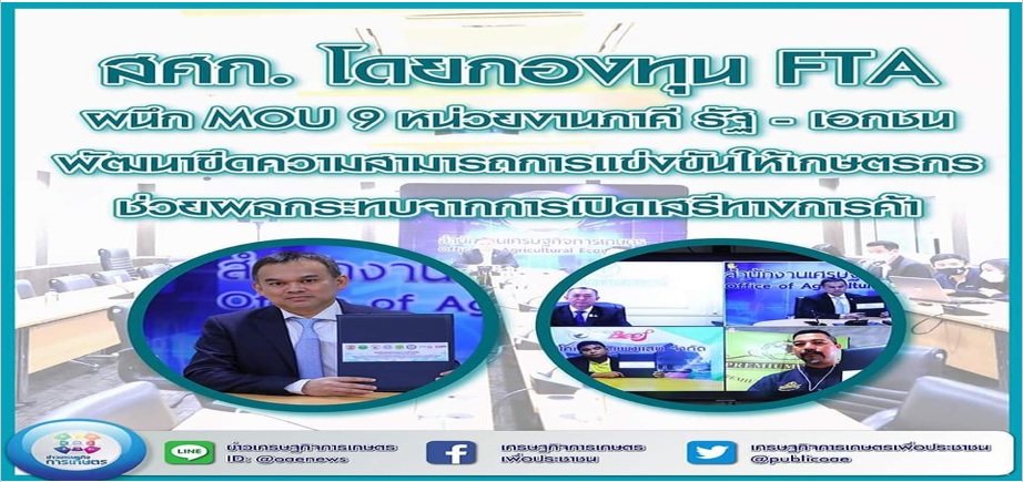 ส่วนบริหารกองทุนภาคเกษตร สำนักงานเศรษฐกิจการเกษตร ได้จัดพิธีลงนามบันทึกความตกลง (MOU) ความร่วมมือว่าด้วยการสร้างความร่วมมือในการแก้ไขปัญหา