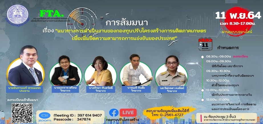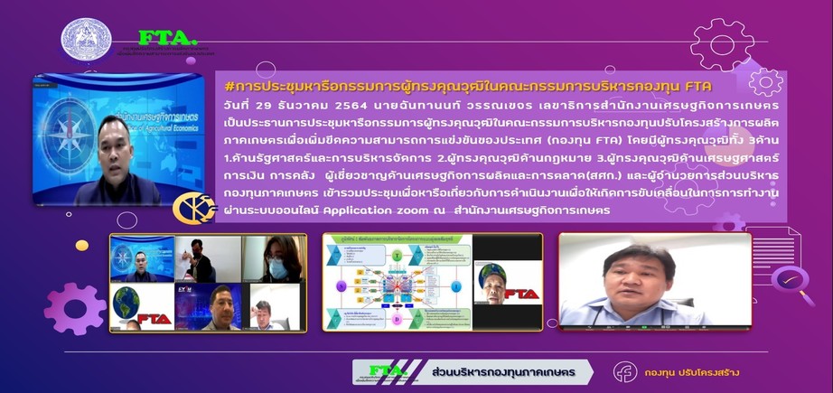 ดร.พงศ์ไท ไทโยธิน ผอ.สวศ. เป็นประธาน ในการจัดประชุมคณะอนุกรรมการติดตาม ประเมินผล และแก้ไขปัญหาการดำเนินงานโครงการต่างๆ ของกองทุนปรับโครงสร้างการผลิตภาคเกษตรฯ(กองทุน FTA) ครั้งที่ 3/2565