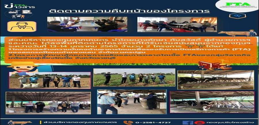 นางหัทยา ทับสวัสดิ์ ผู้อำนวยการ และคณะ ได้ลงพื้นที่ติดตามโครงการที่ได้รับเงินสนับสนุนจากกองทุนฯ ระหว่างวันที่ 13-14มค.2565 ของกลุ่มวิสาหกิจเครือข่ายผู้เลี้ยงโคเนื้อ จังหวัดราชบุรี