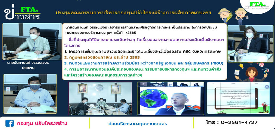 นายฉันทานนท์ วรรณเขจร เลขาธิการสำนักงานเศรษฐกิจการเกษตร เป็นประธาน ในการจัดประชุมคณะกรรมการบริหารกองทุนฯ ครั้งที่ 1/2565