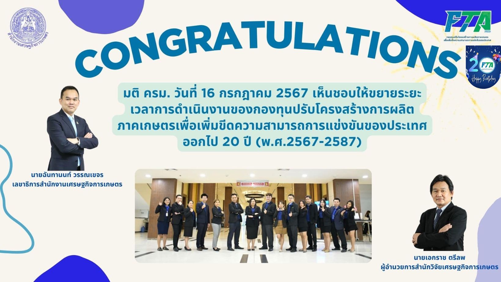 นายฉันทานนท์ วรรรเขจร เลขาธิการสำนักงานเศรษฐกิจการเกษตร ได้เข้าร่วมชี้แจ้งให้ข้อมูลกับ ครม. การขยายระยะเวลาของกองทุนFTA ออกไปอีก 20ปี...